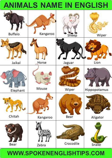 Animal Names Types of Animals List of Animals Animal Pictures • 7ESL from 7esl.com