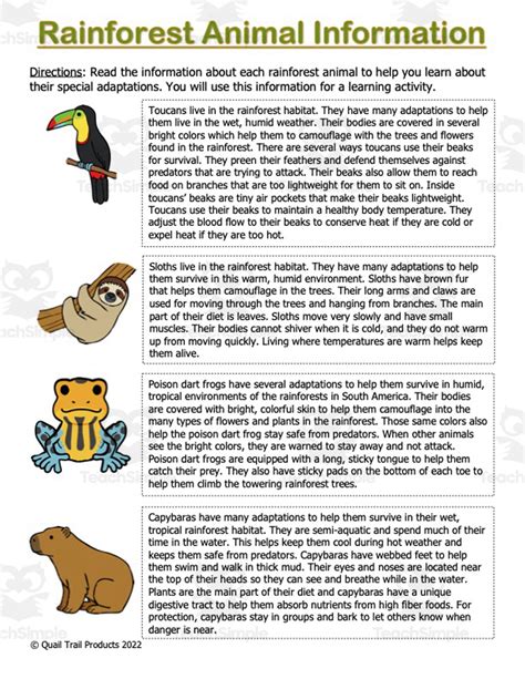 Web with warm temperatures, water and an abundance of food, tropical rain forests support thousands of wildlife species. Another adaptation that they have is that they are primarily nocturnal, so even if they. The sloth uses camouflage and moves very. Web animal adaptations in the rainforest allow animals to survive in the climate there, avoid predators, and seek out prey. Web how have animals adapted to the rainforest environment? In order to understand rainforest adaptations, you first have to understand what an adaptation is. Jaguars, toucans, parrots, gorillas, and tarantulas all make their home in tropical. Web rainforest animals include mammals such as sloths, tapirs, jaguars, tigers, howler monkeys, spider monkeys. An adaptation is a change in a living.